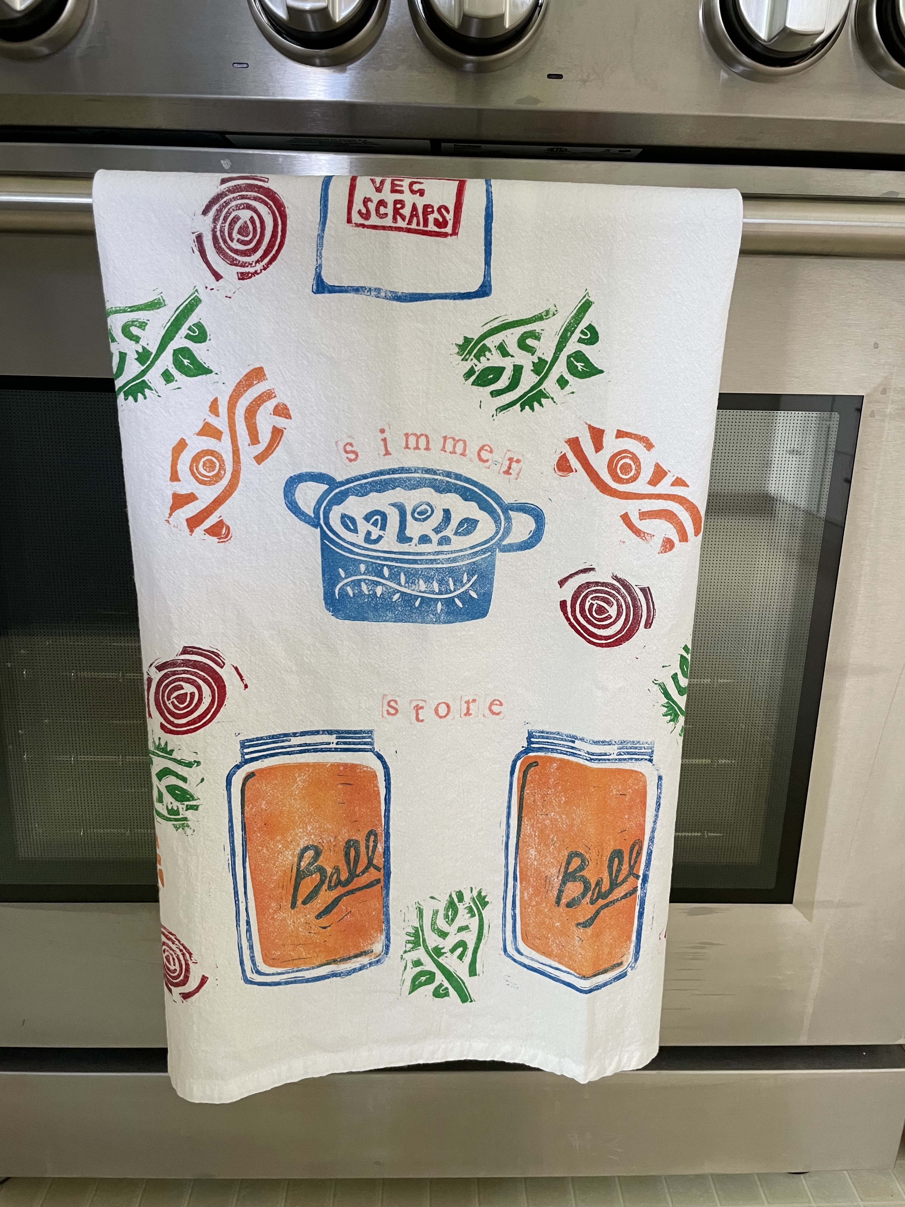 Also, two of my kitchen towels are back. For now, they are made-to-order and take about three weeks from the order date to be shipped to you. Eventually, I will try to have a handful always in stock. But first, I am working on one more towel design, and I am considering reviving the strawberry design that sold out at in-person events and never made it into the shop.