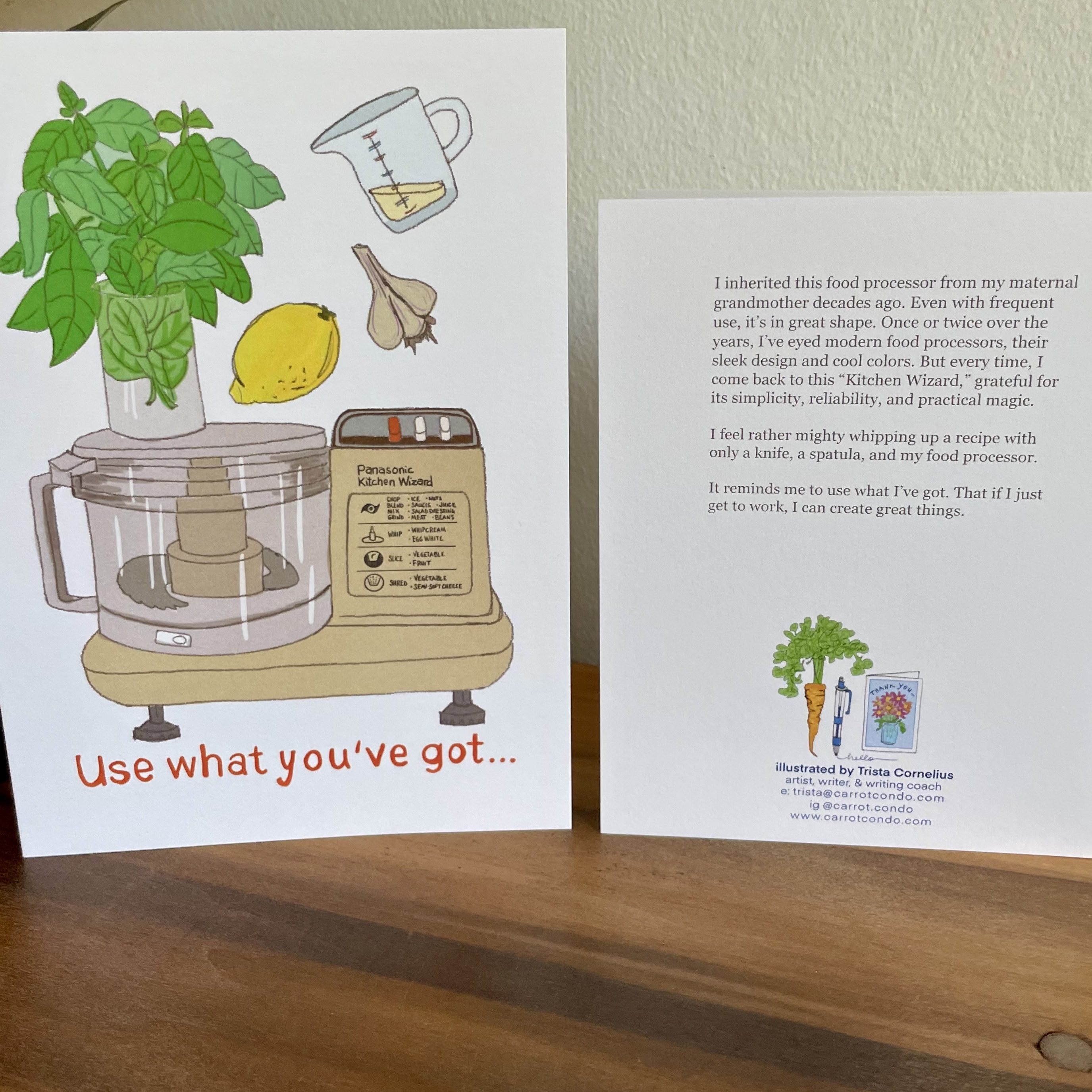 At the moment, I’m most excited about the cards. I really like the artwork, and the back of each card tells a story related to my drawing.