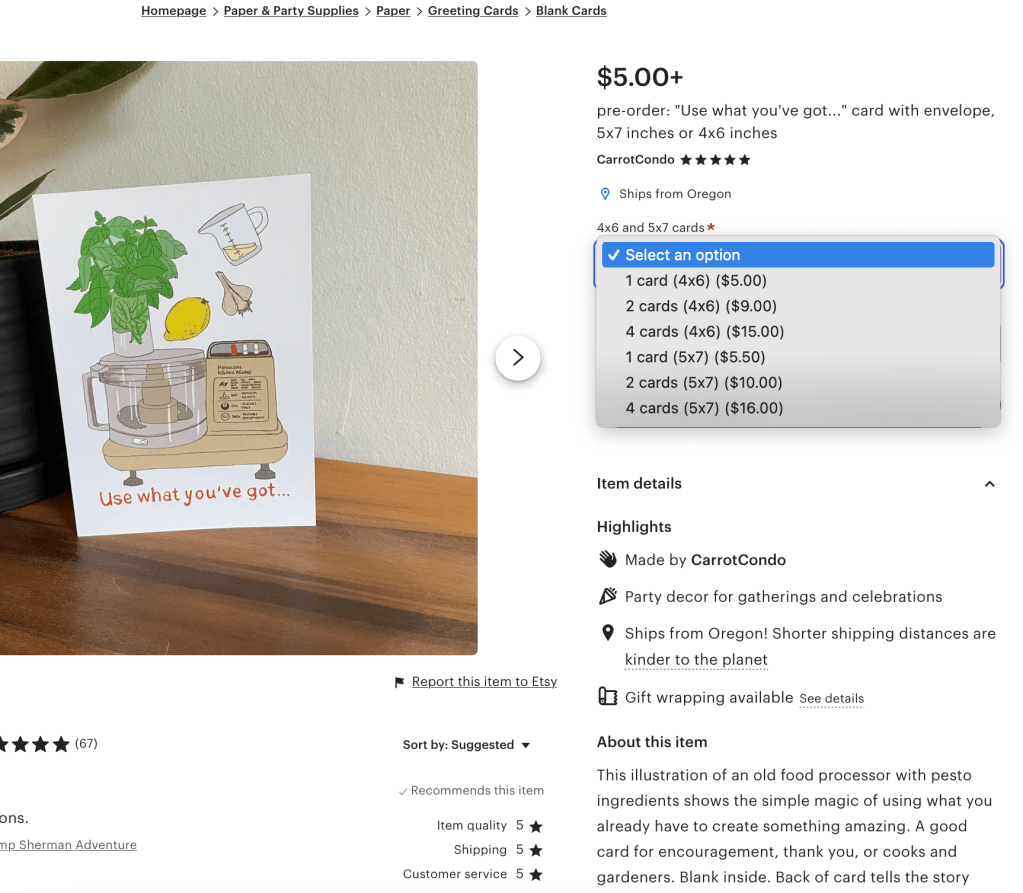 But also, I figured out how to offer different prices for different quantities. So now, for each card, you’ll get a drop-down menu offering you three different quantity/price options. The cards are available for pre-order and will be shipped by the end of October.