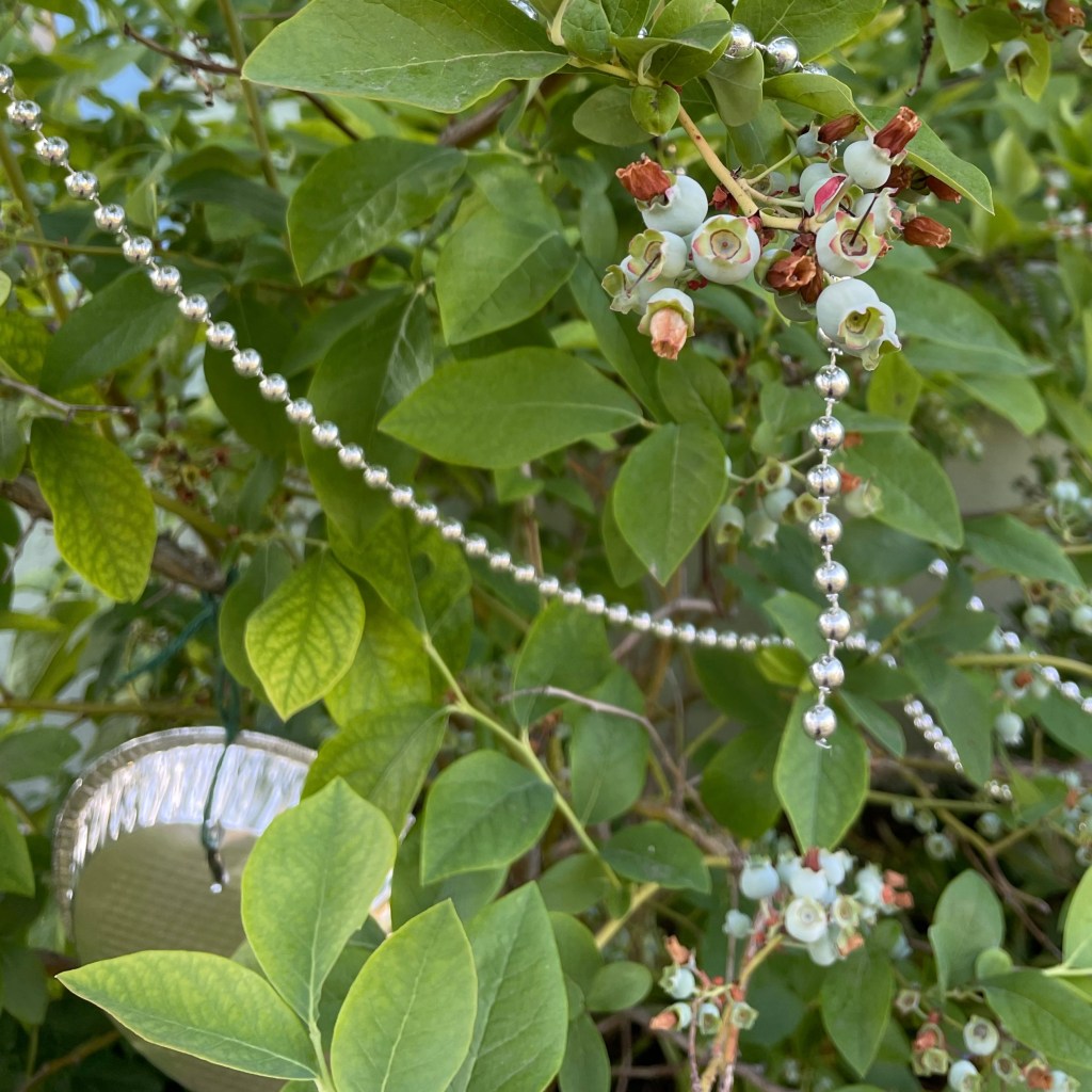 Yes, people stop and gawk in front of my house. Who can figure out why an aluminum pie tin hangs from this bush?