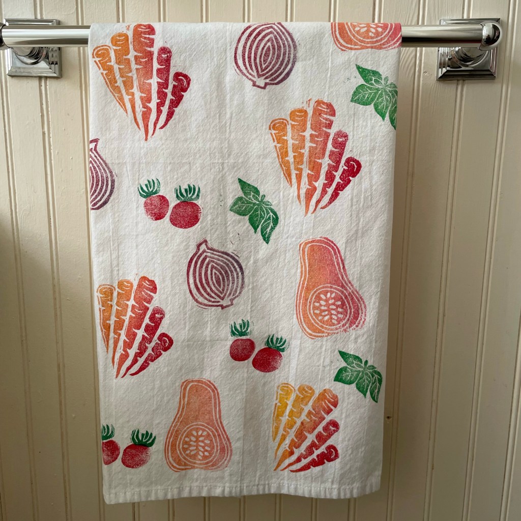 And I should have a few veggie towels as well as *maybe* some printed re-usable produce bags. I have the bags, but they came out the wash super wrinkly, so I’m still working out how to print on them smoothly….
