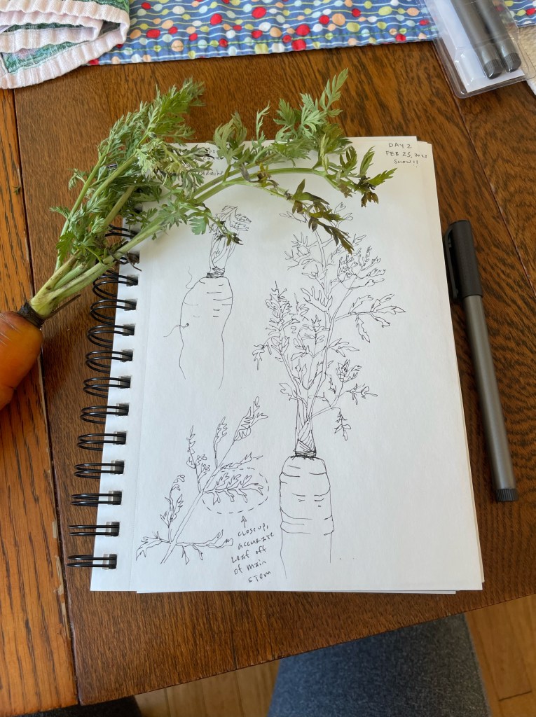 It’s been a while since I’ve written a letter to all of you, and it feels like a good time to catch up. I’m doing some literal cleaning of Carrot Condo–my block-printing space is tidy and ready for the next project, and my shelf of supplies and files is waiting for its pruning and sprucing. I’m also doing more of a metaphorical, spiritual cleaning of Carrot Condo–letting go of ideas that seemed great at first but just didn’t feel fun or inspiring, like The 100 Day Project. I started: